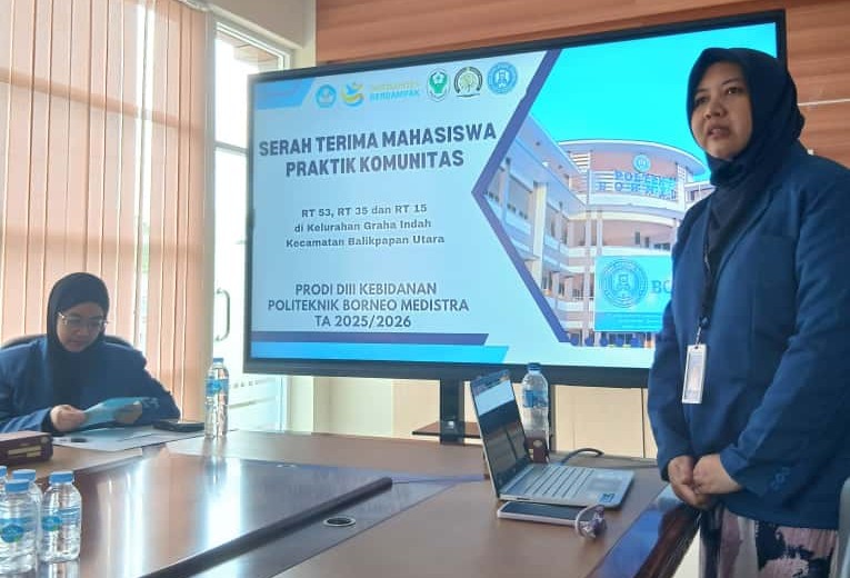 Balikpapan — Program Studi DIII Kebidanan Politeknik Borneo Medistra kembali menunjukkan komitmennya dalam mendukung peningkatan layanan kesehatan masyarakat melalui pelaksanaan Praktik Komunitas bagi mahasiswa angkatan Tahun Akademik 2025/2026. Kegiatan serah terima mahasiswa berlangsung pada Senin 17/11 di ruang pertemuan kampus.